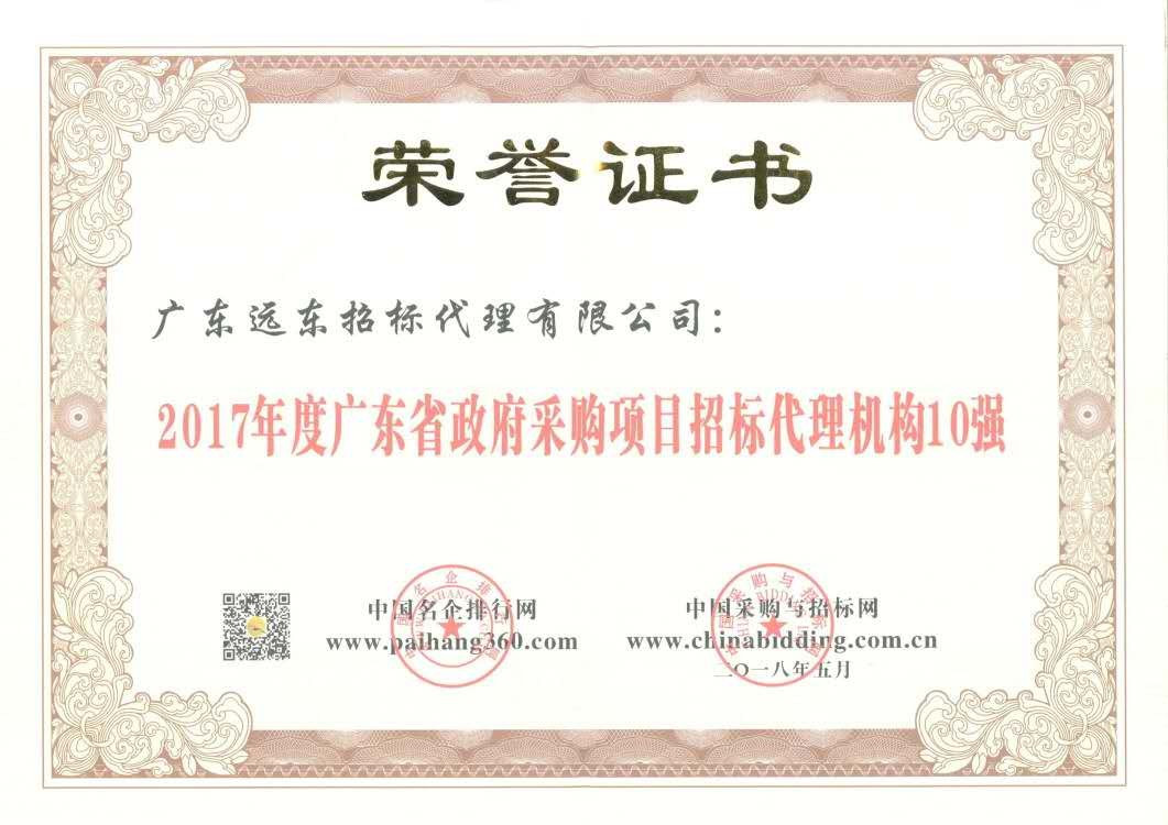 2017年廣東省政府采購(gòu)項(xiàng)目招標(biāo)代理機(jī)構(gòu)10強(qiáng)